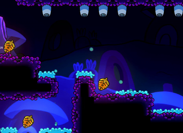The focal point of this game was the dangerous- icky- blue goop. A little light that dynamically adjusts to the shape of the blue goop, and a ripple across it really pushes it from feeling lifeless to living.